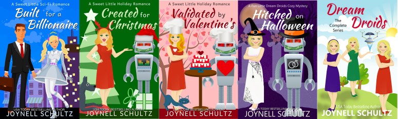This box set collection contains all four cozy mysteries in the Dream Droids series. (See below image for the covers of each individual book.)